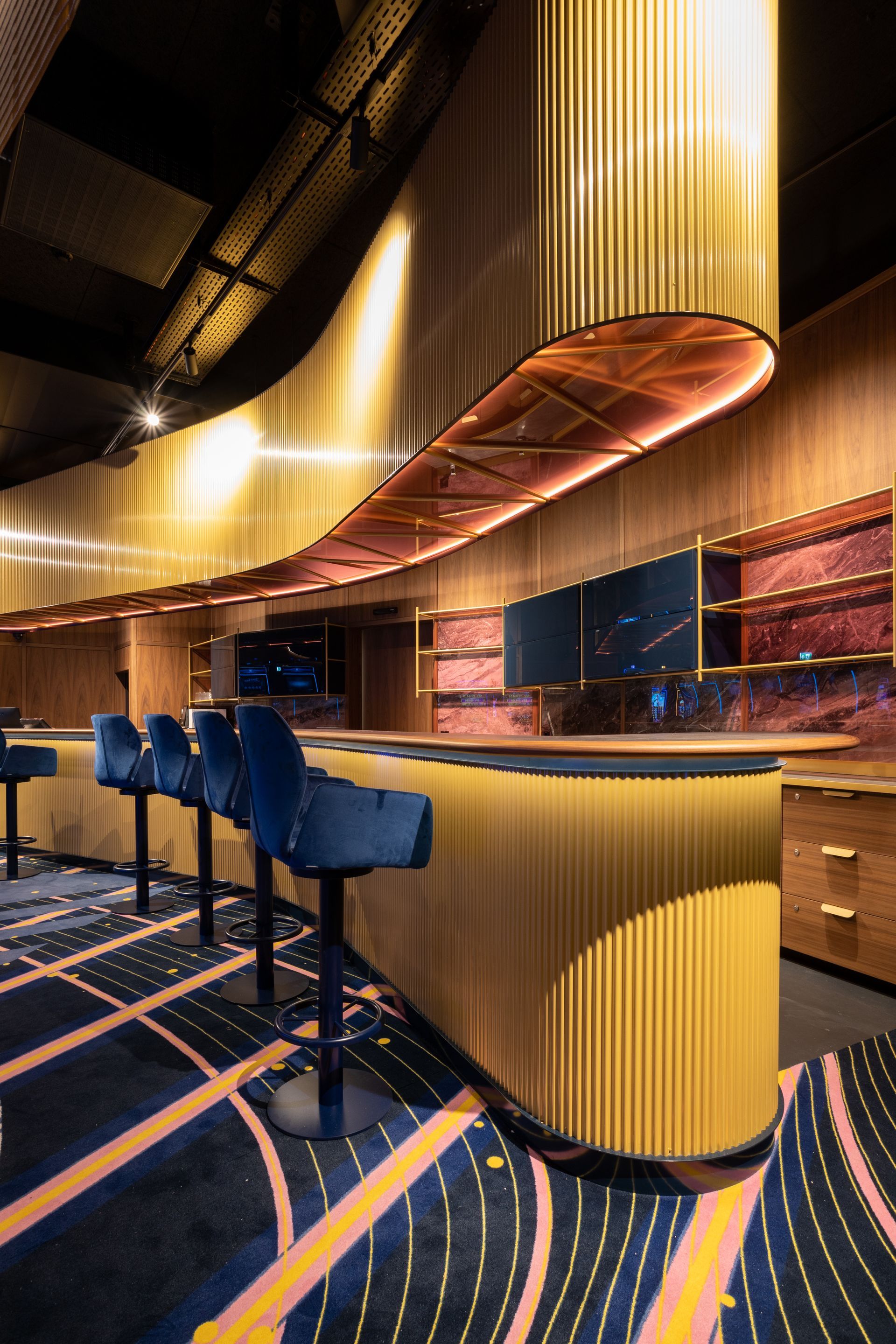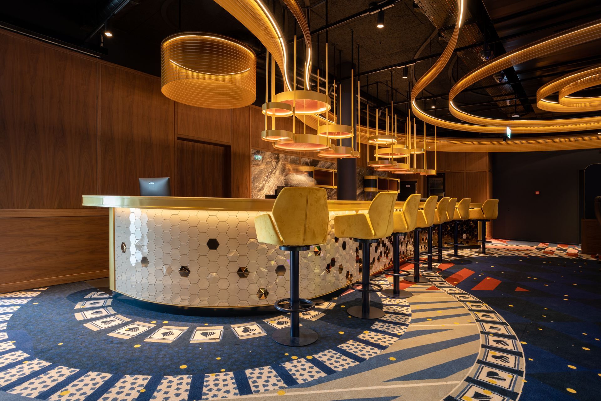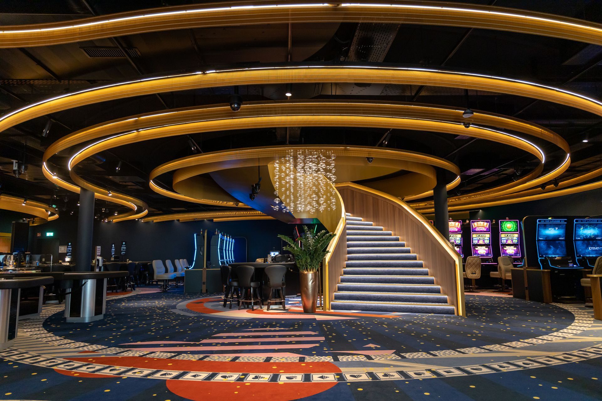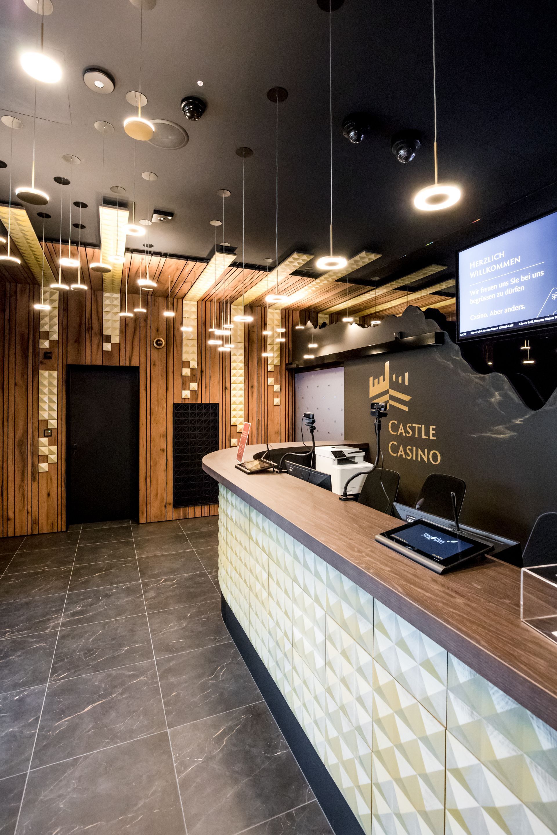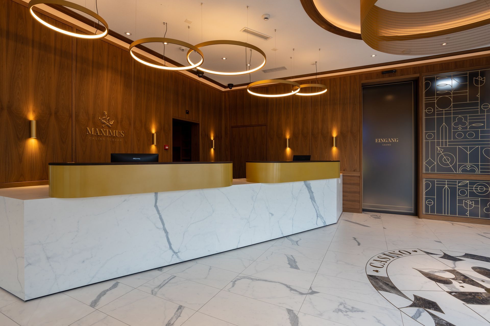 Unser zweites Casino-Projekt in Liechtenstein, diesmal von der Planung an in unserer Hand. Herausgekommen ist ein Casino, in dem die Liebe zum Detail überall erkennbar ist, ebenso die hohe Qualität. – Die zwei Highlights: Der Kronleuchter mit 7 m Durchmesser und die Bartheke mit 14 m am Stück.