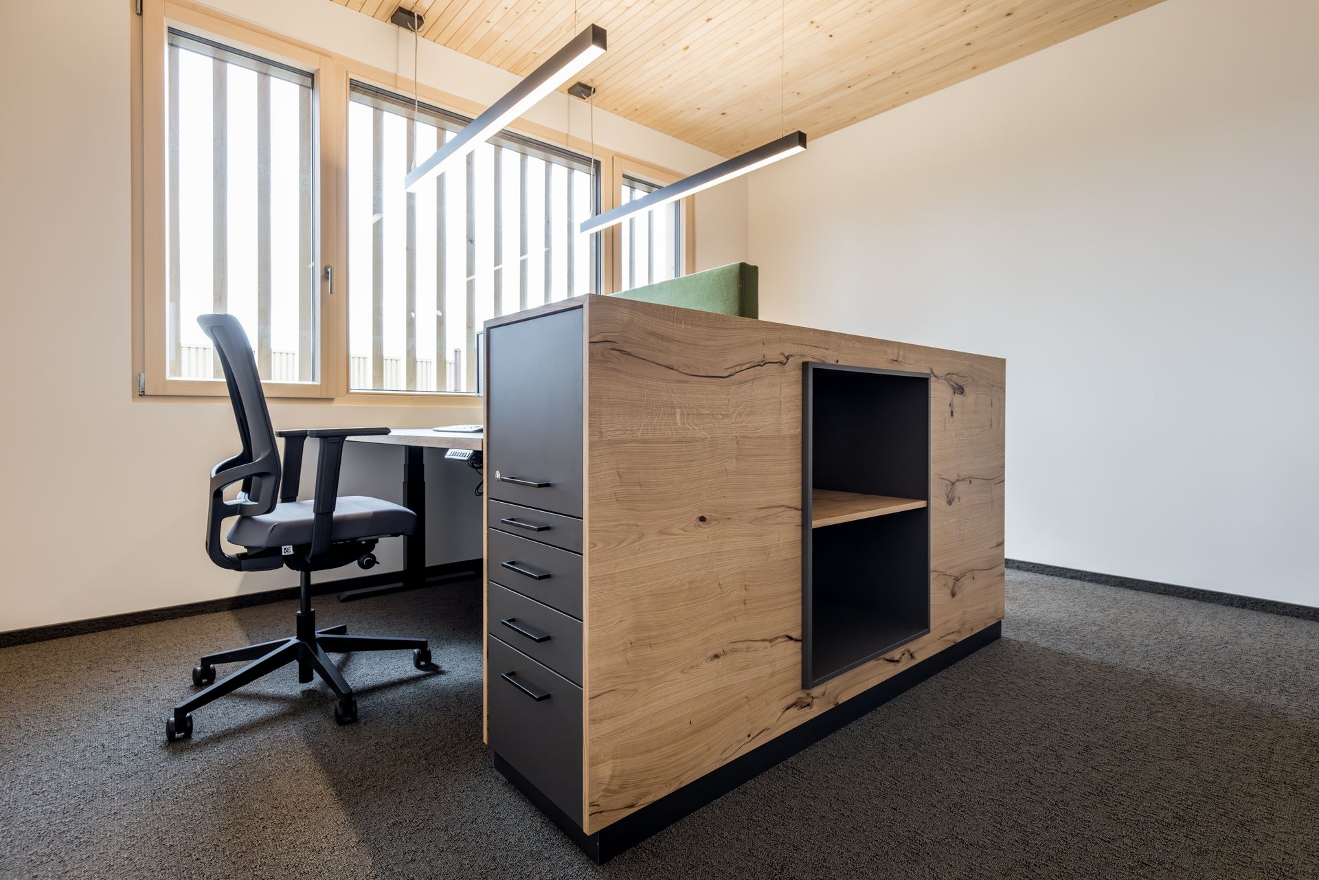 Für den Neubau in Friesenhofen durften wir neue Büroräume gestalten, die den Werten und dem Pioniergeist des Unternehmens gerecht werden. Entstanden sind funktionale, hochwertige Arbeitsplätze mit einem Fokus auf Ergonomie, Kommunikation und Identität – passend für ein Unternehmen, das das große Ganze im Blick hat.