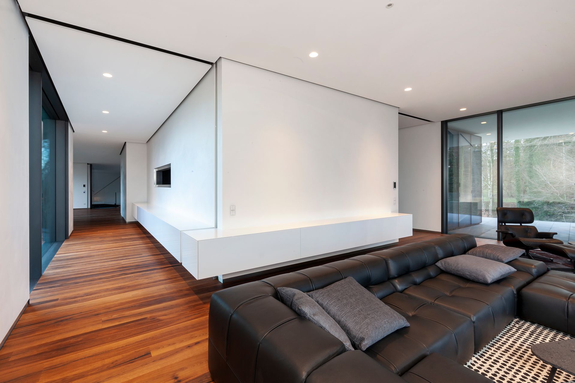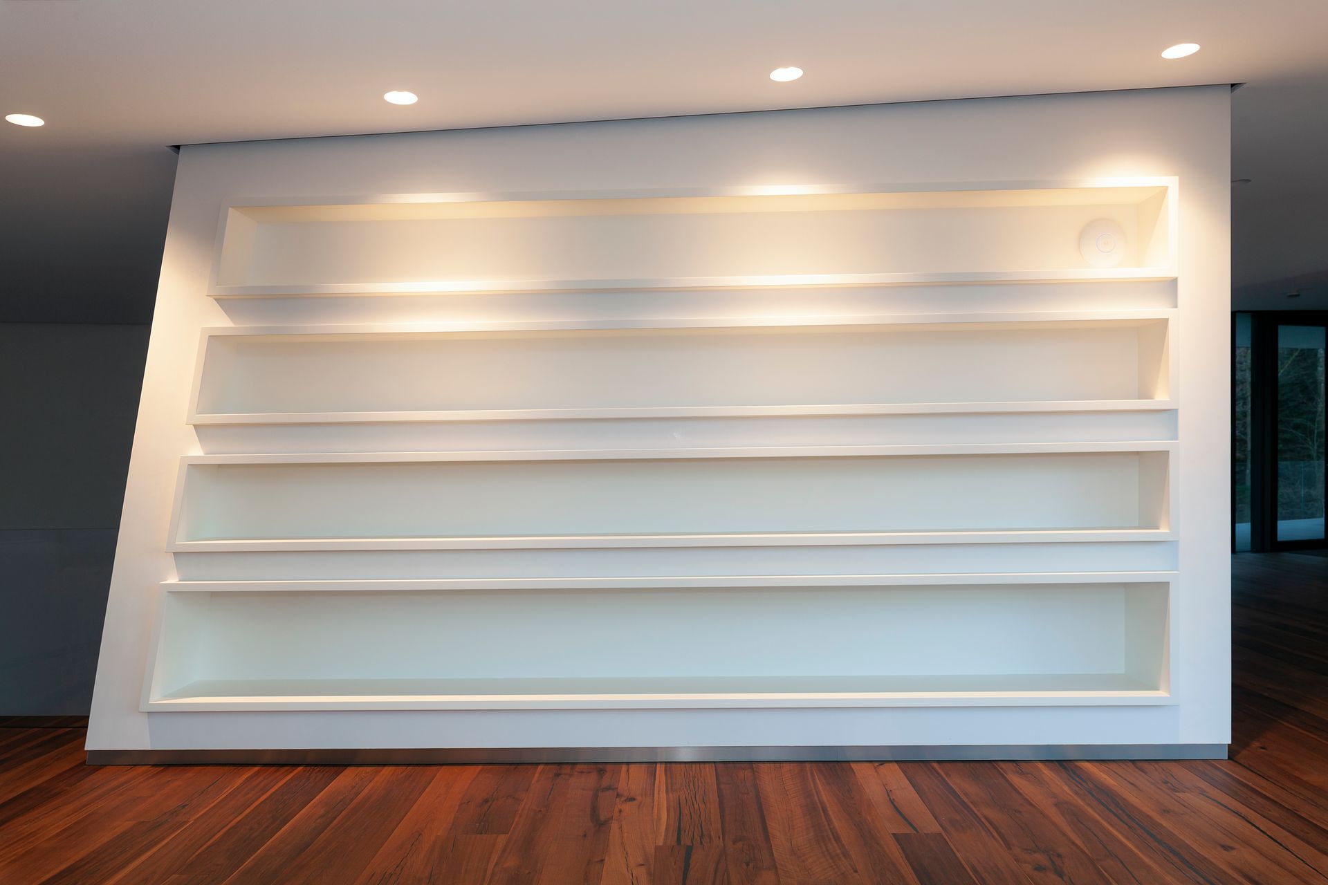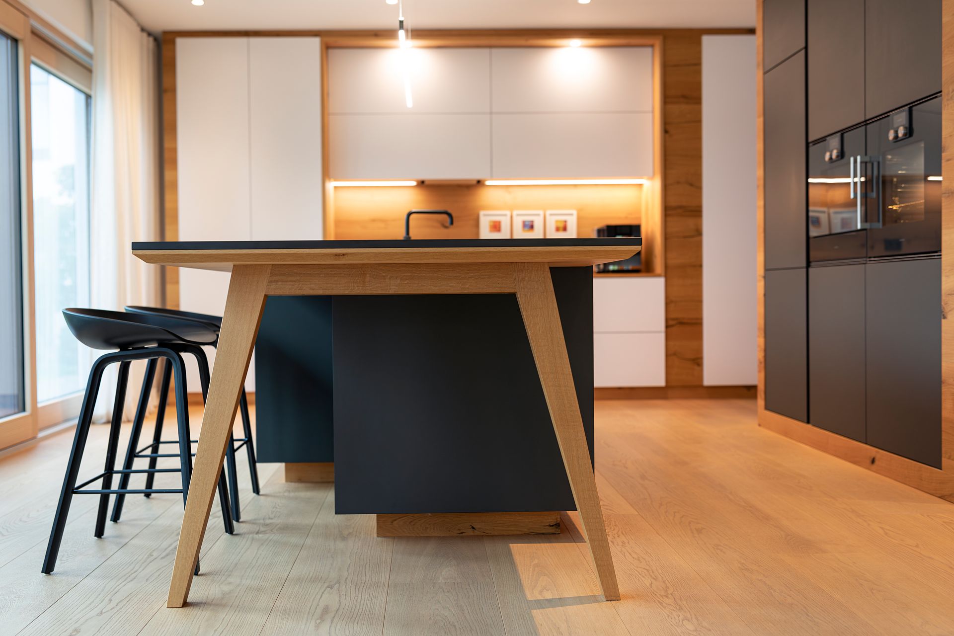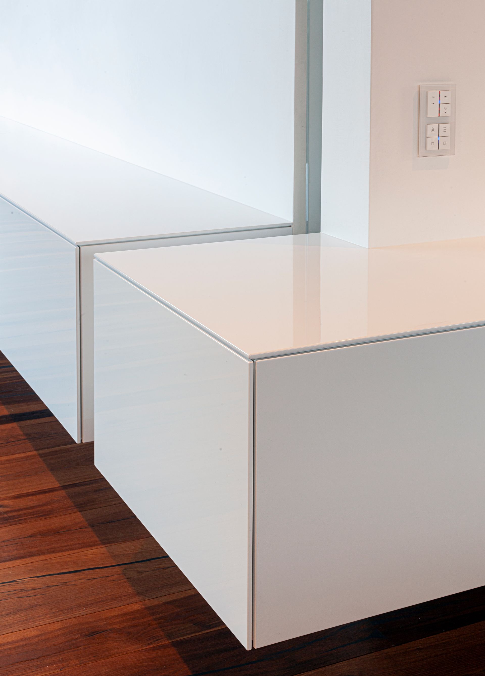 Ein exklusives Wohnhaus und ein Projekt, das uns von der Planung bis zur Ausführung beinahe drei Jahre begleitet hat. Das Highlight: Das Sideboard im Wohnzimmer, mit gesamt 7 Metern am Stück und ein zweites ums Eck anschließend mit 5 Metern am Stück – beide in weiß hochglanz.