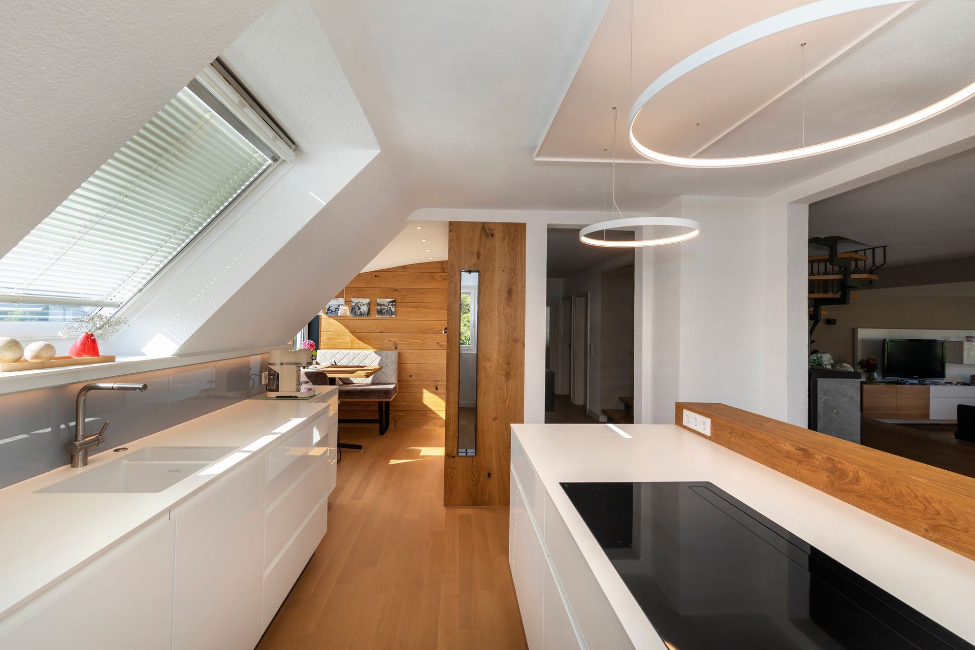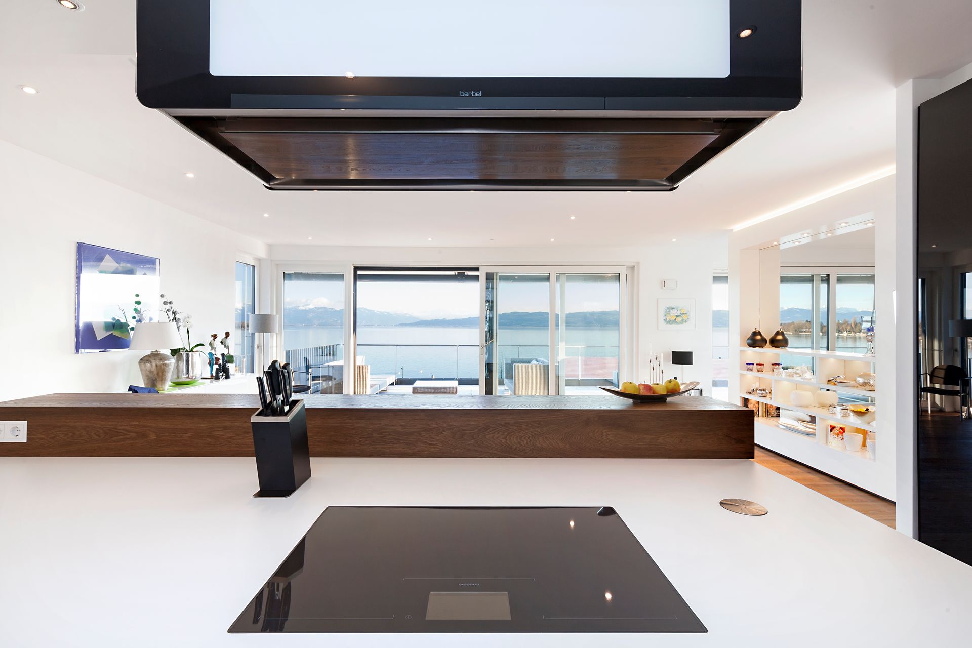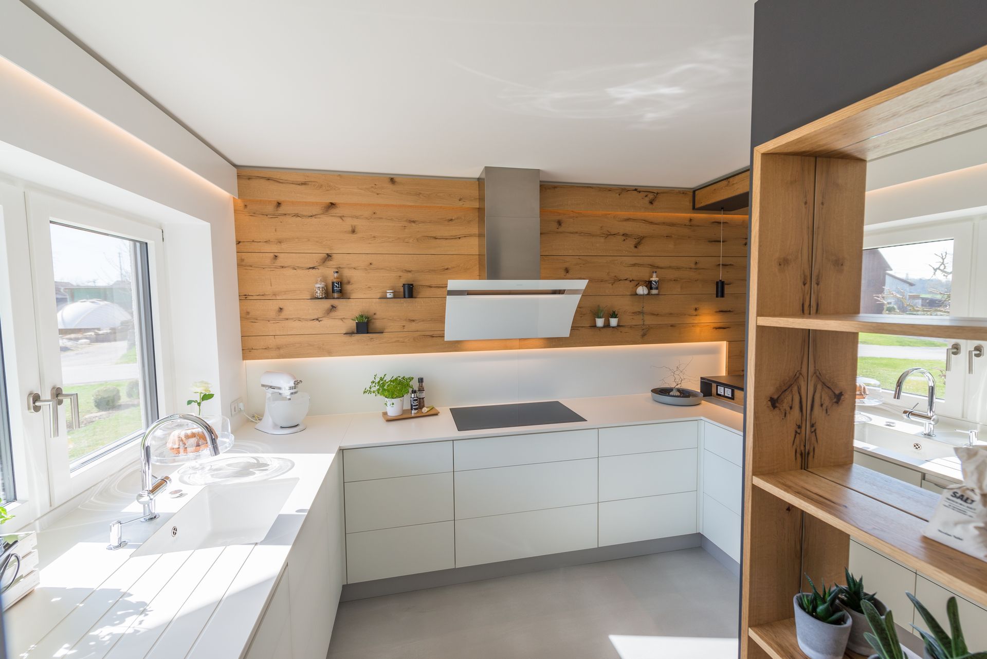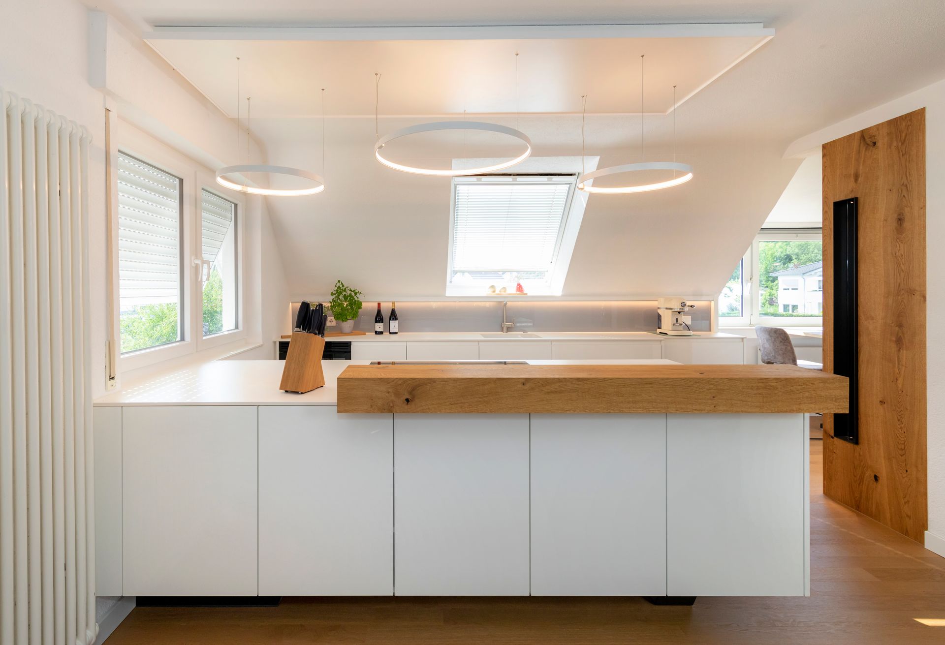 Ein exklusives Wohnhaus und ein Projekt, das uns von der Planung bis zur Ausführung beinahe drei Jahre begleitet hat. Das Highlight: Das Sideboard im Wohnzimmer, mit gesamt 7 Metern am Stück und ein zweites ums Eck anschließend mit 5 Metern am Stück – beide in weiß hochglanz.