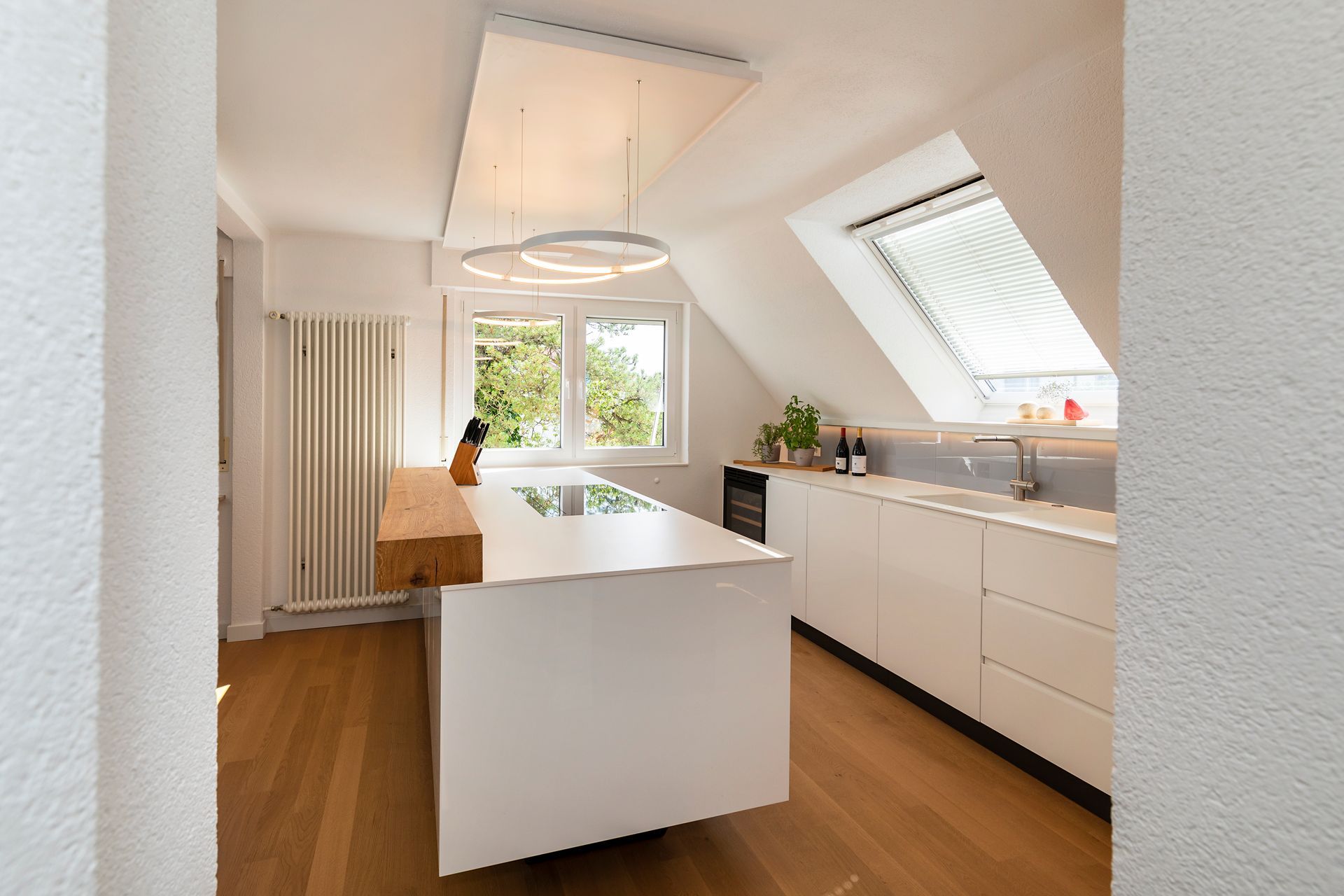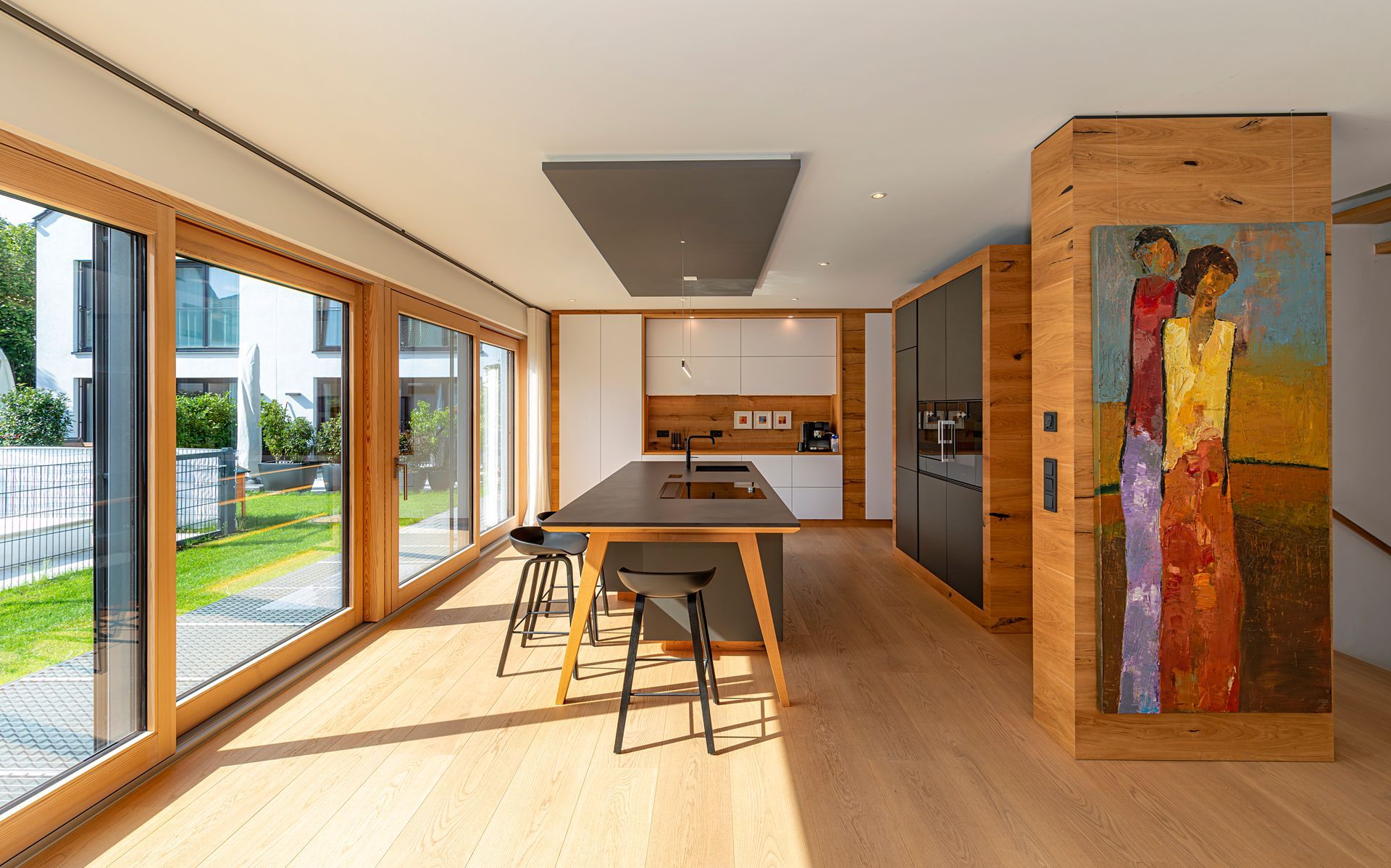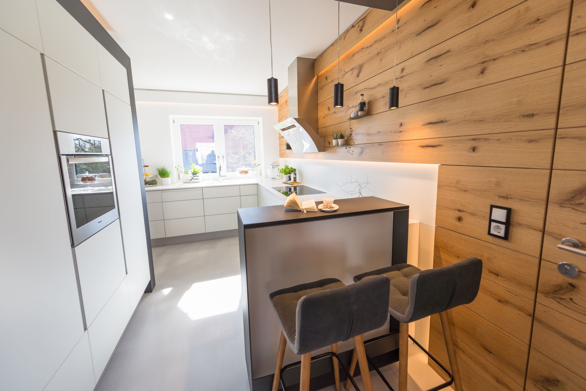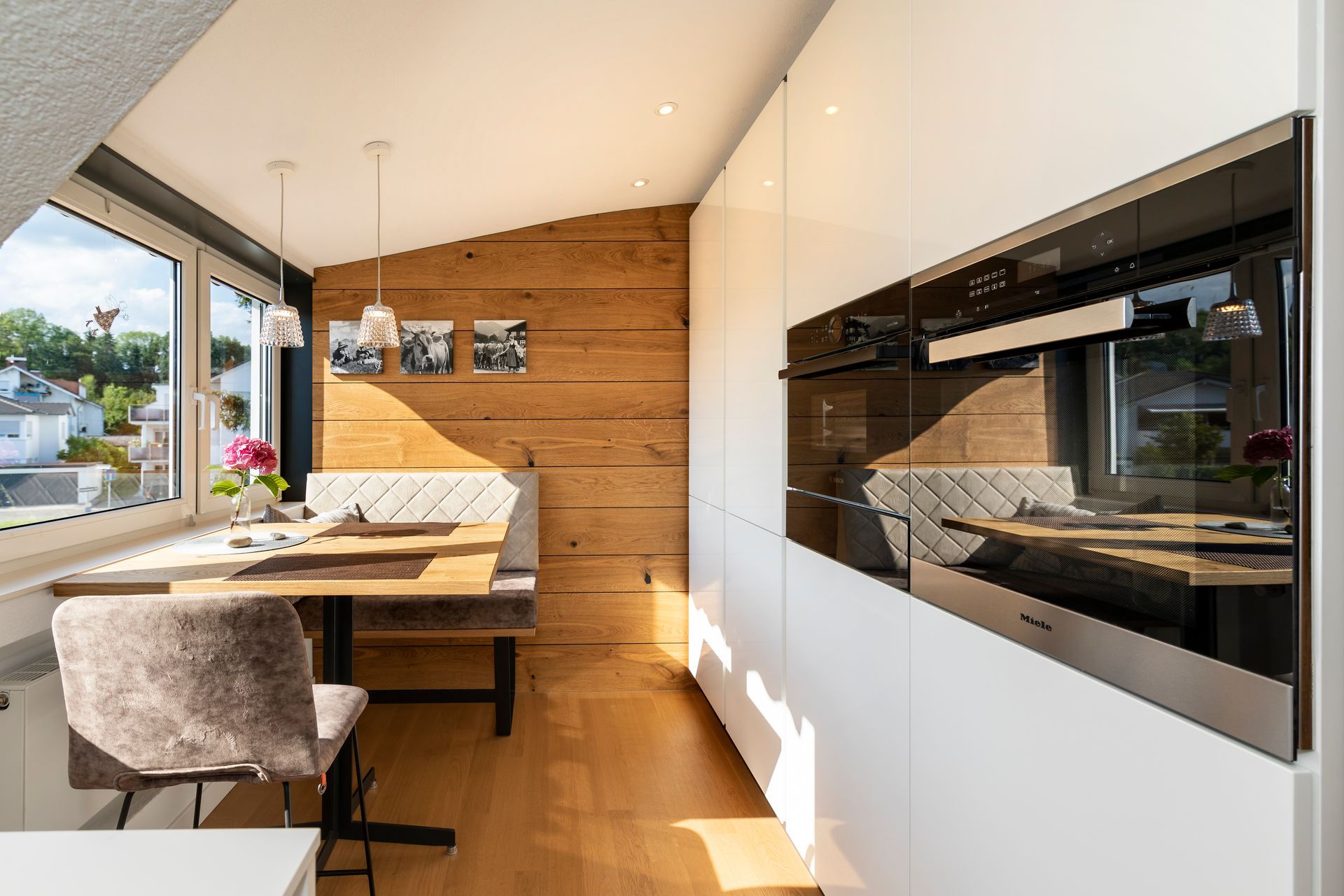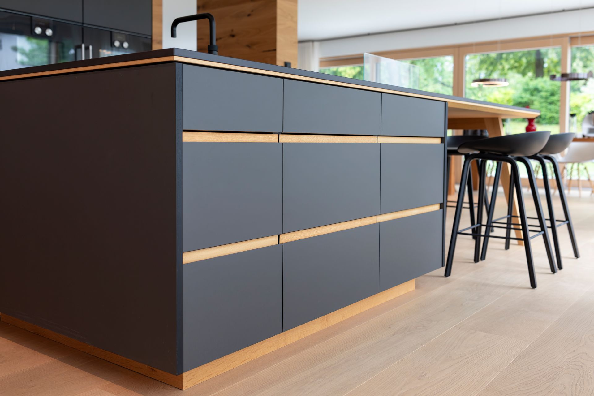 Ein exklusives Wohnhaus und ein Projekt, das uns von der Planung bis zur Ausführung beinahe drei Jahre begleitet hat. Das Highlight: Das Sideboard im Wohnzimmer, mit gesamt 7 Metern am Stück und ein zweites ums Eck anschließend mit 5 Metern am Stück – beide in weiß hochglanz.