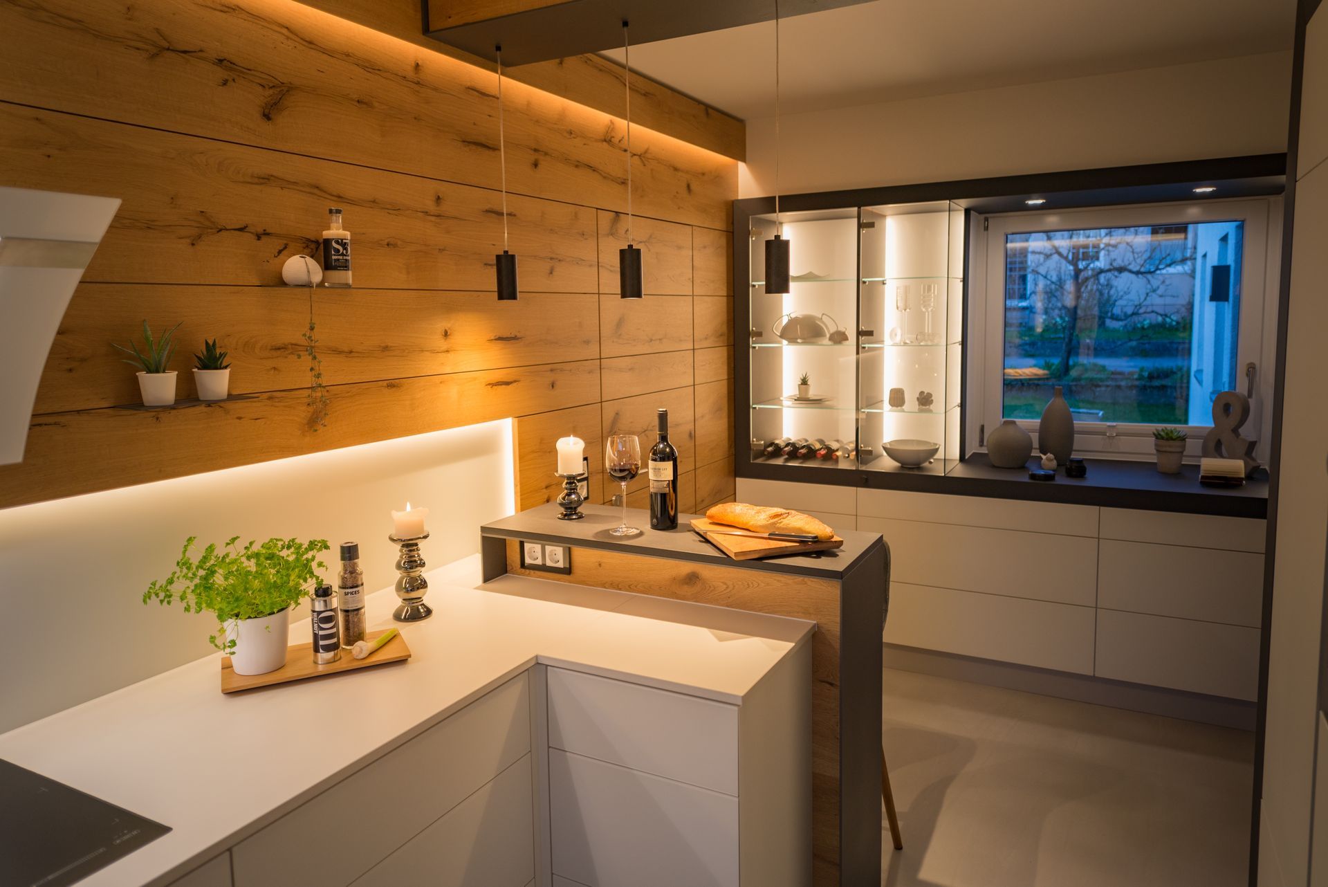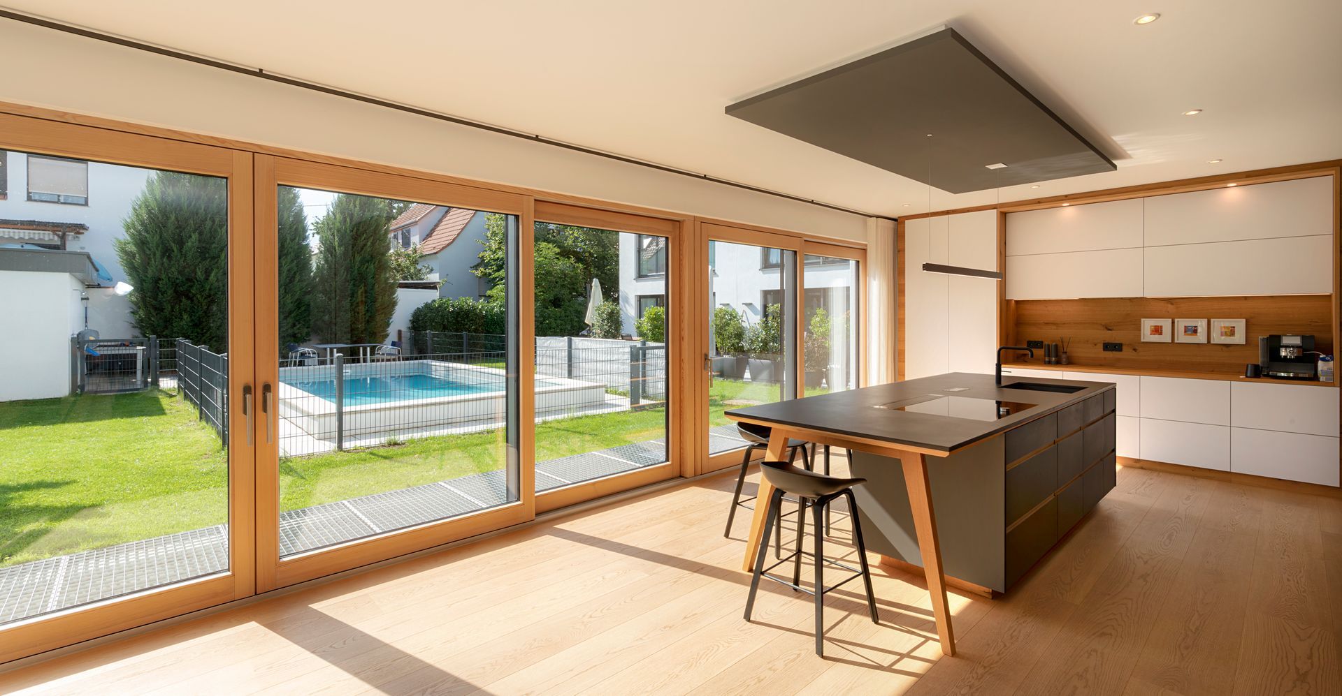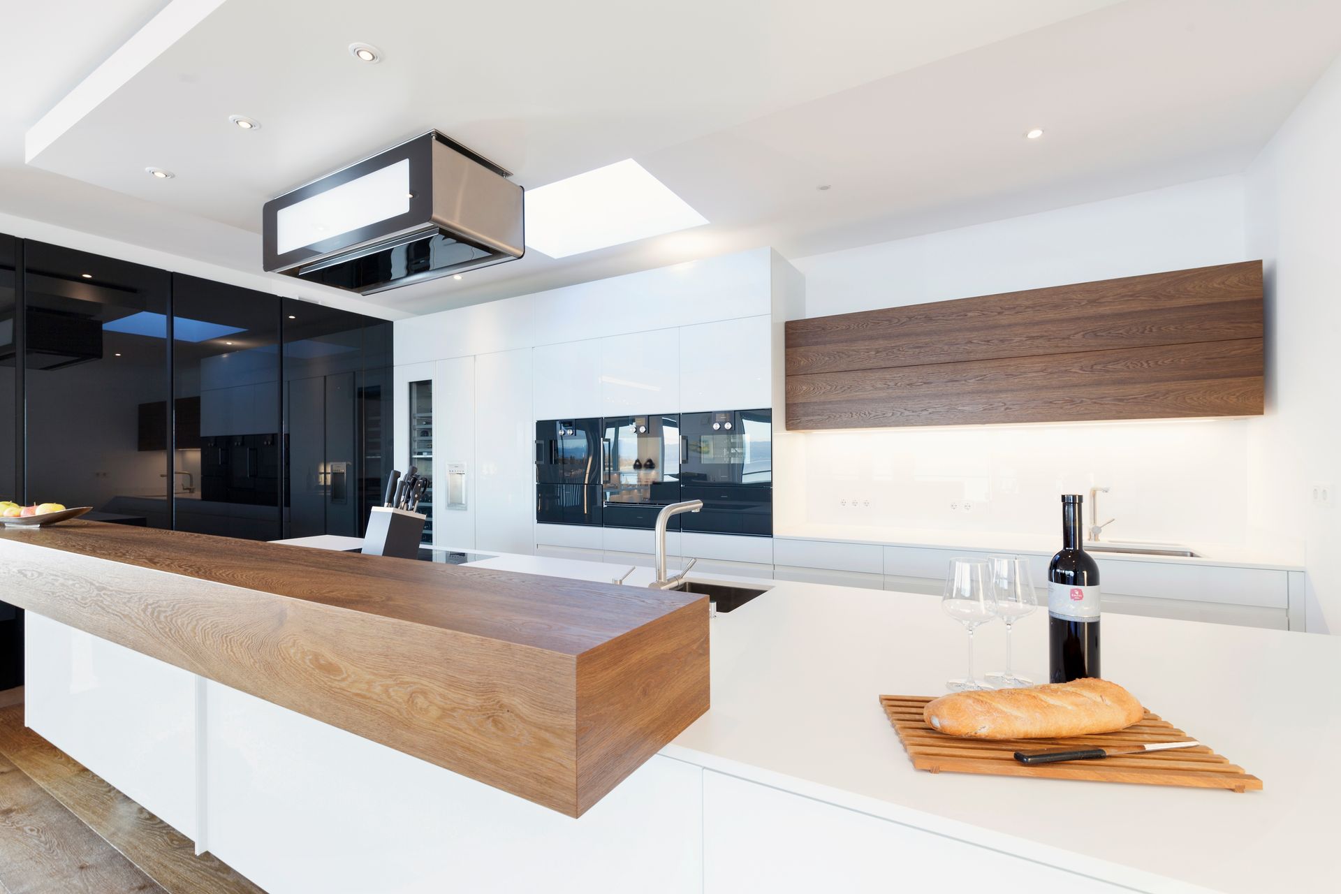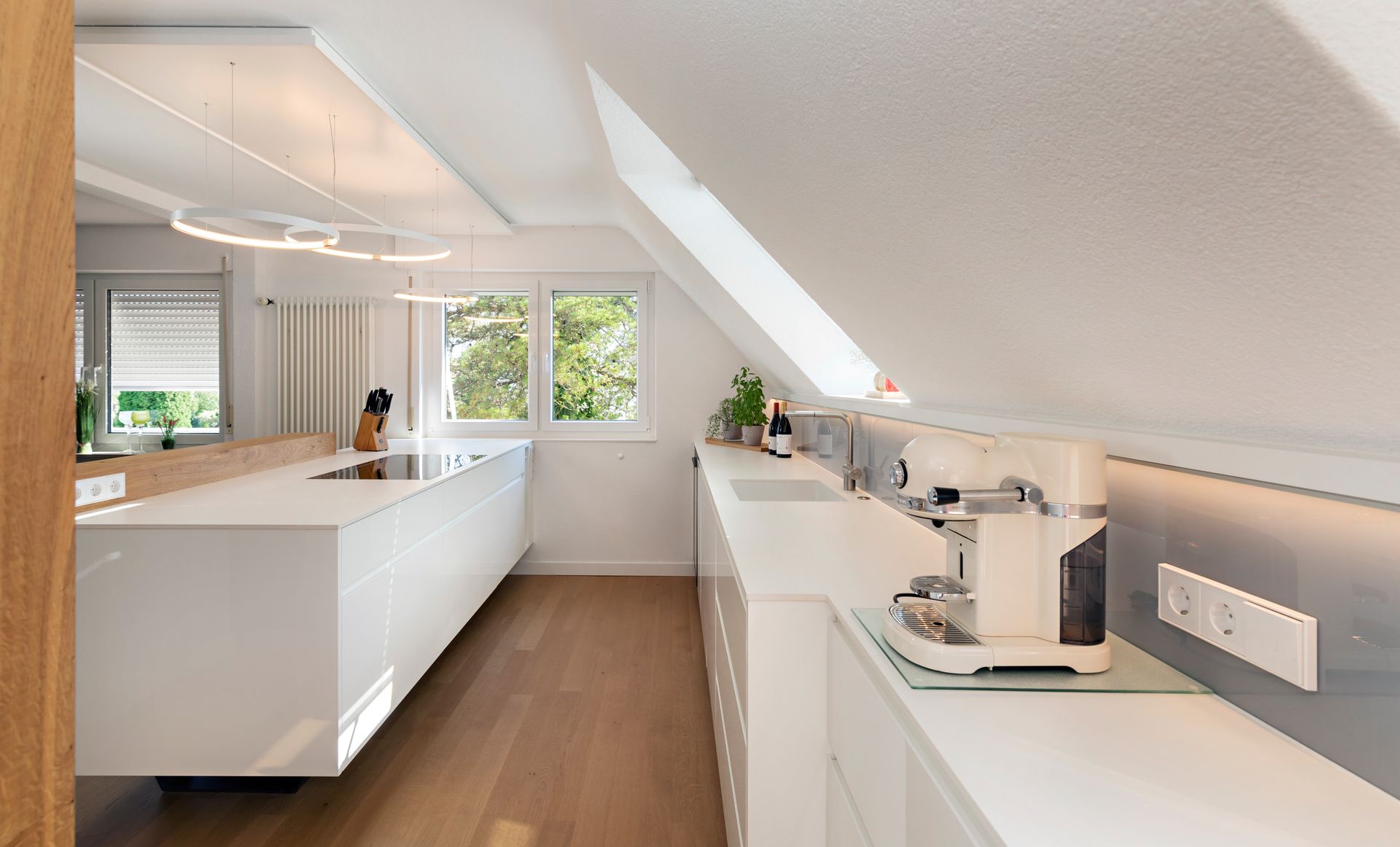 Ein exklusives Wohnhaus und ein Projekt, das uns von der Planung bis zur Ausführung beinahe drei Jahre begleitet hat. Das Highlight: Das Sideboard im Wohnzimmer, mit gesamt 7 Metern am Stück und ein zweites ums Eck anschließend mit 5 Metern am Stück – beide in weiß hochglanz.